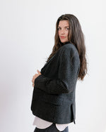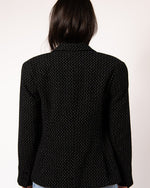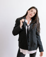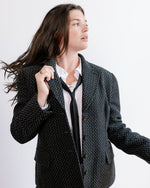 Tailored Fit Corozo Buttons Sewn in Saratoga Springs NY 100% wool, black with subtle white stripe, woven in North America Fully lined with 100% Rayon woven in Japan Two front pockets and one interior pocket...