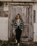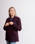 Straight fit Corozo buttons Sewn in Saratoga Springs NY 100% Wool black and white plaid woven in the USA, & 100% Wool plum berry woven in Mexico Fully lined with 100% Rayon from Japan Two...